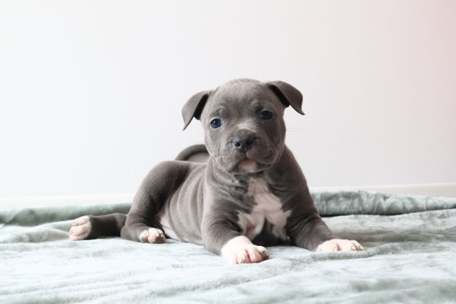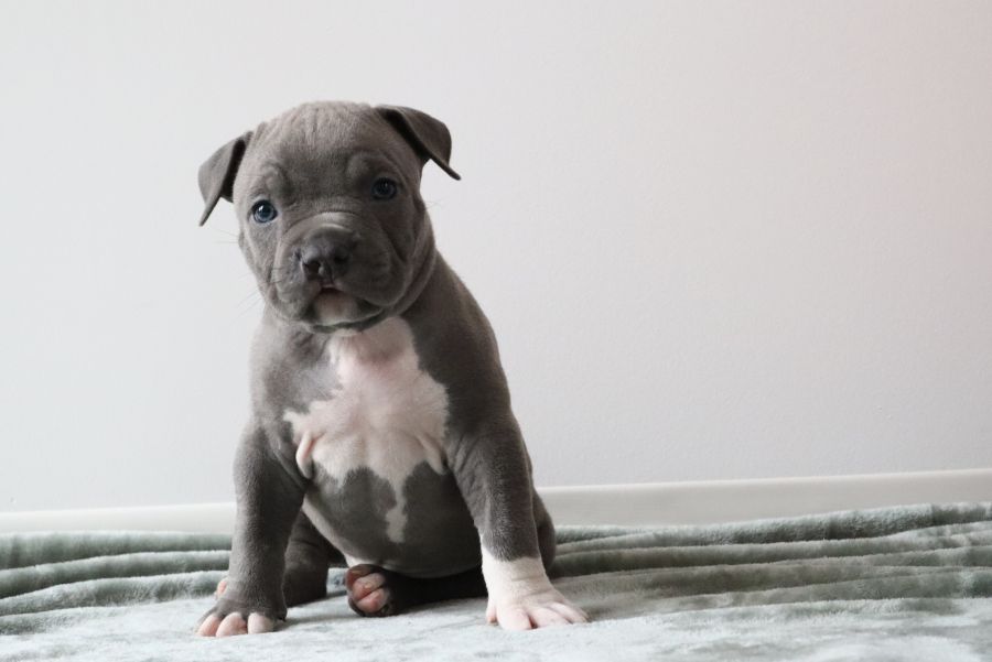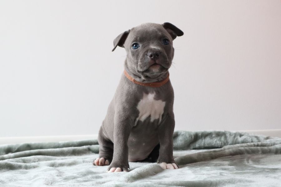 Sur une portée de 10 chiots à réserver chiots Staffordshire Terrier Américain nés le 26 septembre 2025.