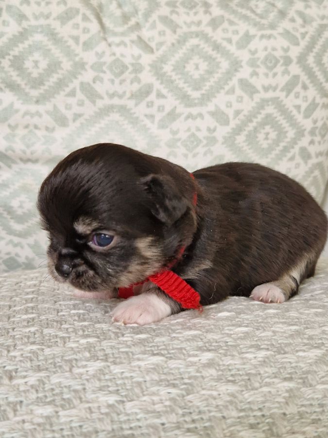 Très jolie petite puce pleine de tendresse et d’affection, vive, espiègle et très attachante.