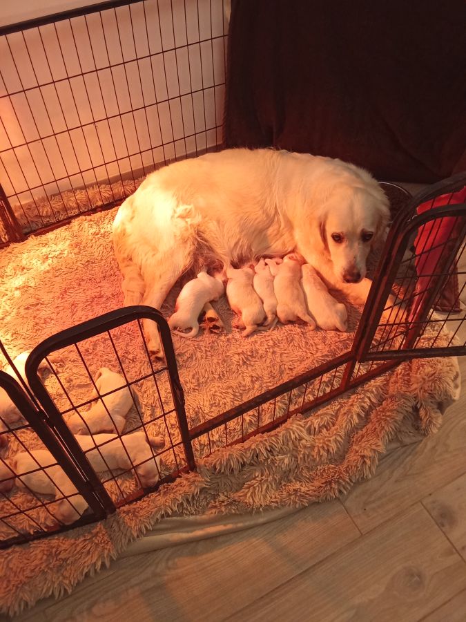 À réserver chiots golden retriever nés le 27 octobre 2025 4 femelles et 5 males.