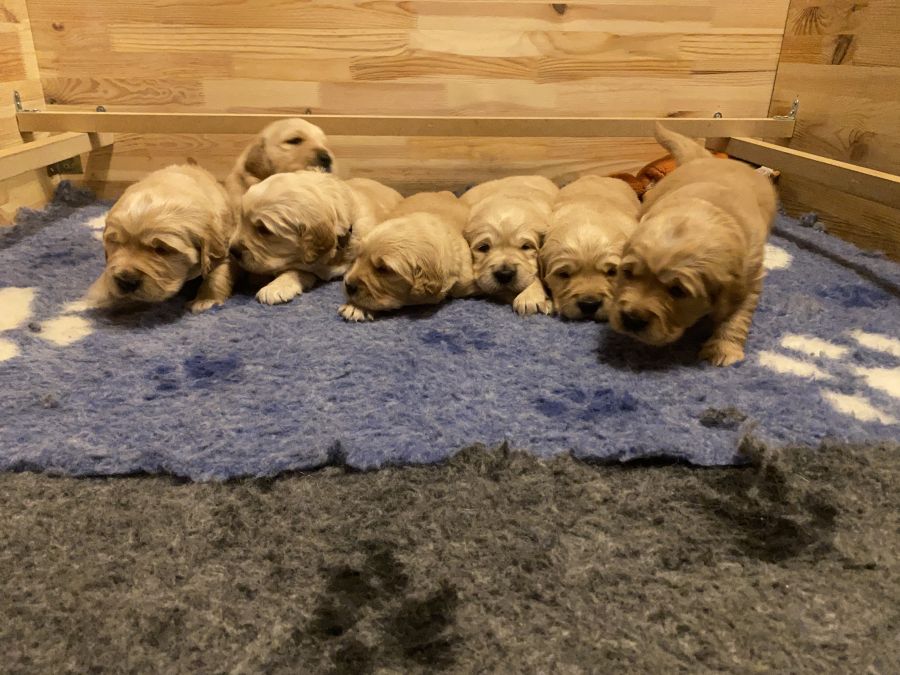 L'élevage des Bulles Dorées propose à la réservation 4 chiots mâles Golden Retriever nés le 13 octobre 2025