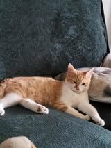 Max est un chaton adorable. Débordant d'amours. Un petit tigrée roux et blanc avec un queue de raton laveur, il est beau. Ronronne à souhait. Il aime les câlins et en donne sans réserve. Curieux, joueur autant avec ses congénères qu'avec vous. Il est OK chats, ok petit chien ( chihuahua) et ok enfants. Il est doux, c'est une boule d'amour. Il recherche une gentille famille, vous vous êtes reconnus ! Venez lui rendre visite, il sera le plus heureux.