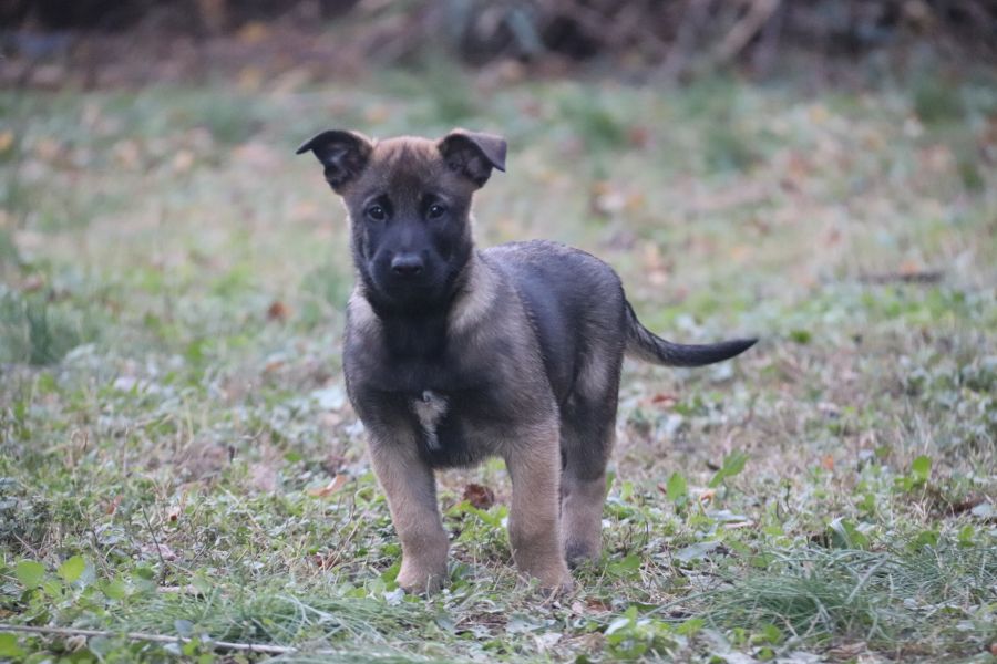 Disponible à vente, à l'élevage : un mâle charbonné né le 6 septembre d'une portée de 11 chiots. Il est disponible pour du travail ou des personnes connaissant et expérimentées dans la race.