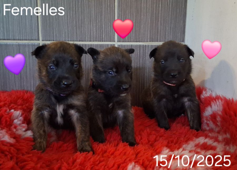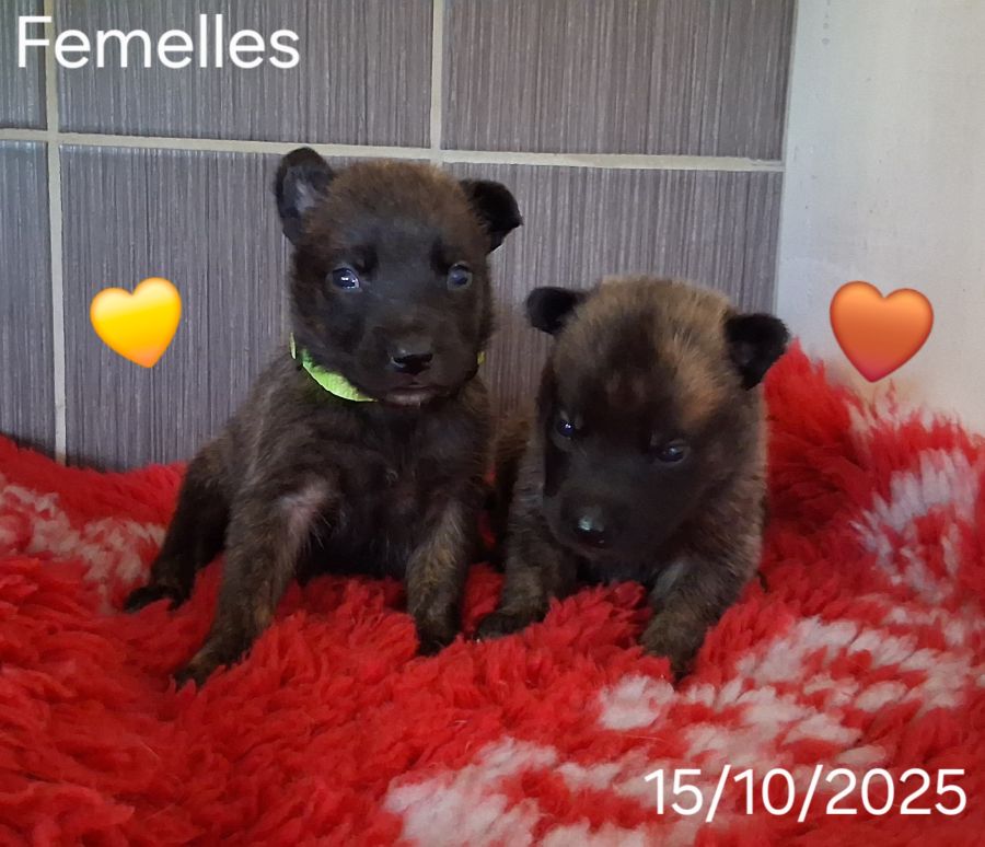 Sur une portée de 9 chiots (4 mâles et 5 femelles), 3 femelles sont encore disponibles à la réservation