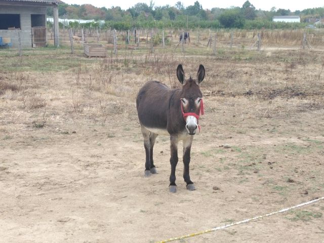 Gentille ânesse avec certainement un passé douteux car a du mal a se laisser attraper au pré.