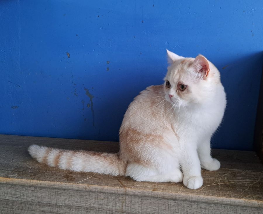 Autawa est un adorable et très câlin (il est en demande de caresses) chaton Scottish straight de couleur rare red silver shaded et blanc.