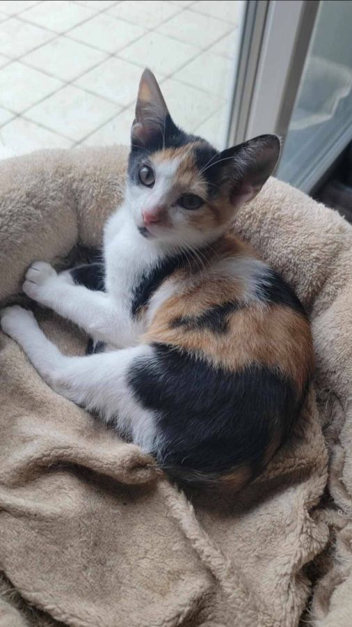 Très sociable, elle vient facilement à la rencontre des gens et raffole des moments de jeu : balles, plumeaux et courses poursuites sont ses passe-temps favoris. Après s’être bien dépensée, elle aime venir se blottir contre son humain pour profiter de câlins.