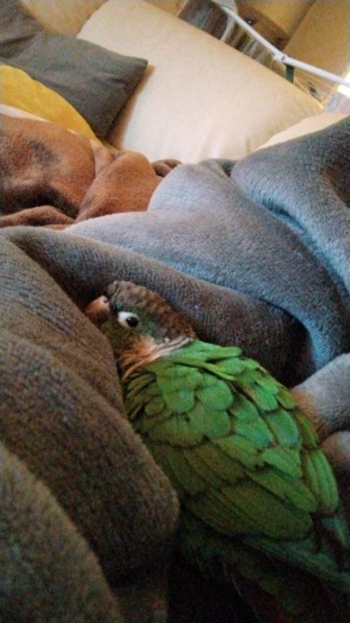 Conure femelle de 1an et demi , EAM , en liberté à la maison et dan...