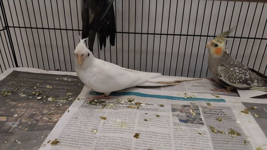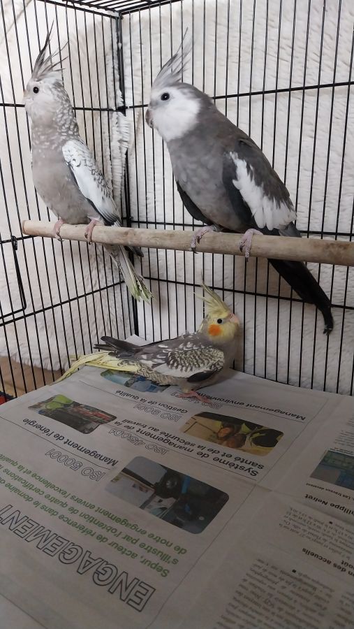 Je cède mon couple de Calopsitte avec la grande cage Elles vivent t...