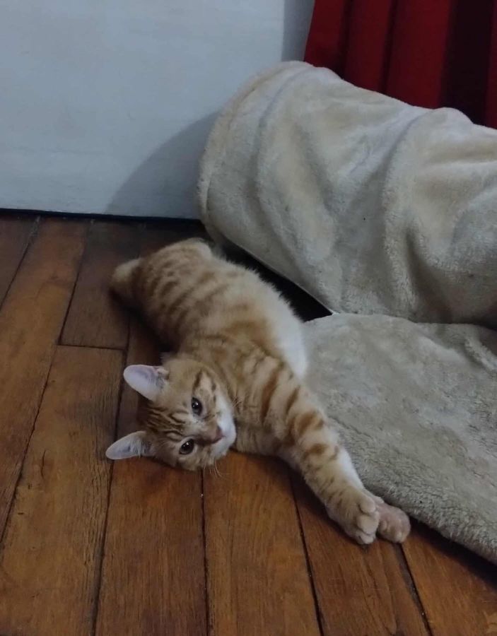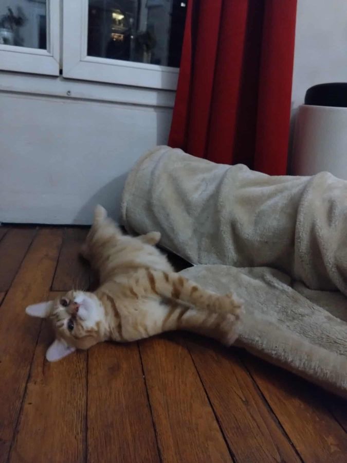 Il reste toutefois un chaton sensible : lorsque l'agitation est trop forte, il préfère se mettre à l'abri pour retrouver son calme.
