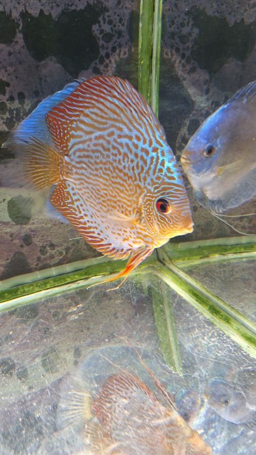 Discus élevés à la maison, issus de parents turquoise rouge et léopard. Environ 7 à 9 cms. Remise en main propre...