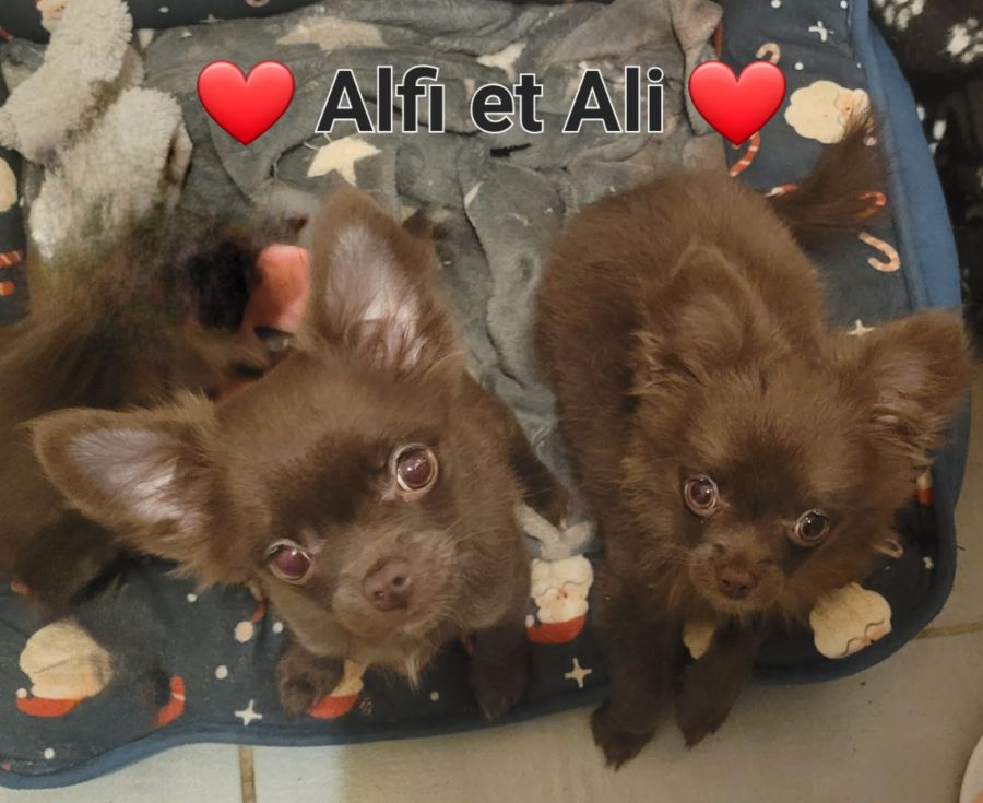 2 Magnifiques chiots Chihuahuas mâles de parents Lof et confirmés poils longs. Nés le 28 juillet. Ali le plus touffu et Alfi avec sa petite tache blanche dans le cou. Ce sont deux amours, très sociables, joueurs et câlins 🥰 Disponibles de suite. Ils sont vendus pucés, vaccinés avec papier Lof et certificat de bonne santé du vétérinaire.