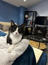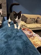 Je suis une adorable petite perle. J'adore me blottir sur les genoux, ronronner….Suivre les humains de partout…Je suis une bavarde et je ne vous laisserai pas tranquille tant que vous ne m' aurez pas fait des câlins….