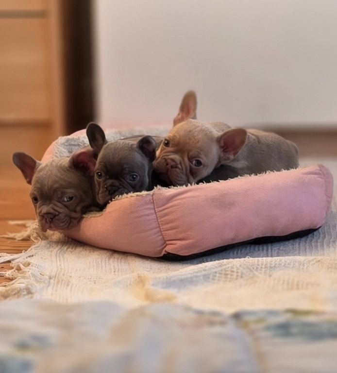 Je propose mes 3 petits joyaux 💎, très bien typé Bouledogue Francais (non LOF), nés le 25 septembre.