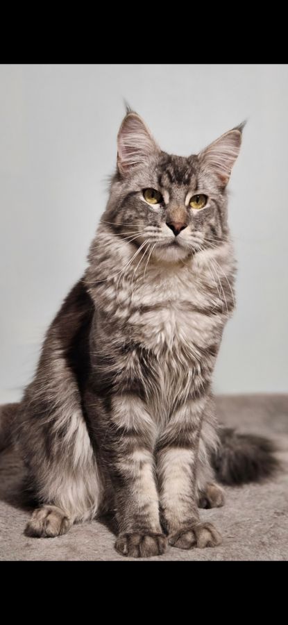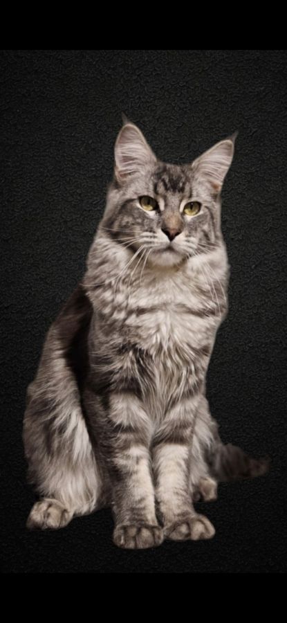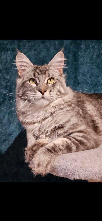 Cause arrêt d'élevage, propose mâle maine coon loof entier bleu silver blotched tabby.