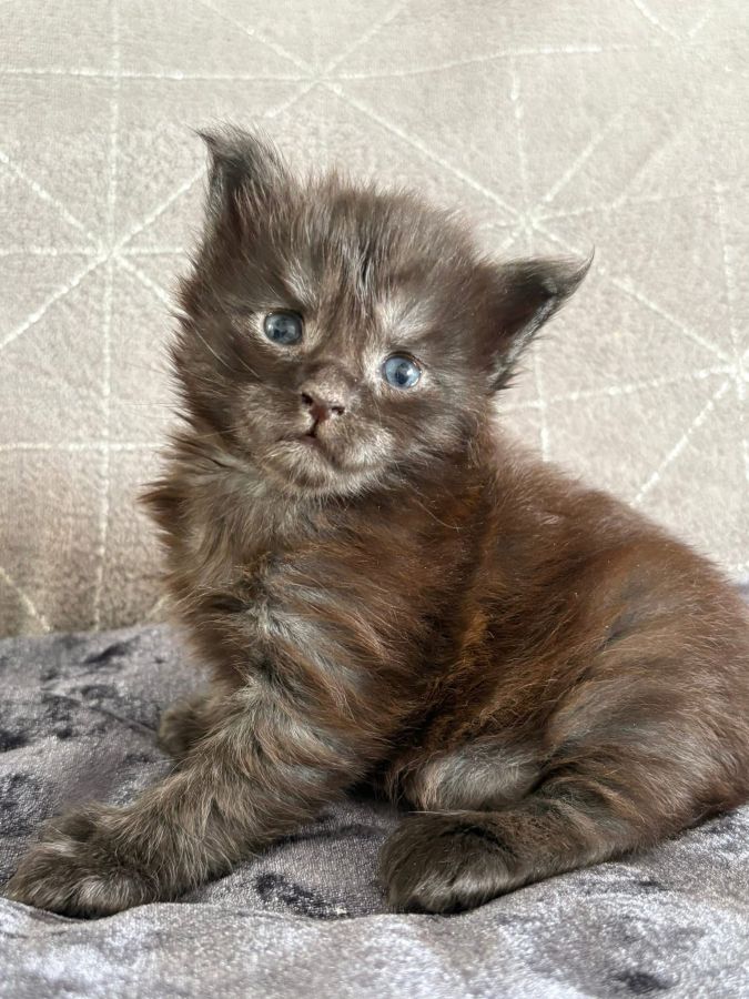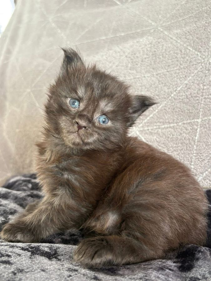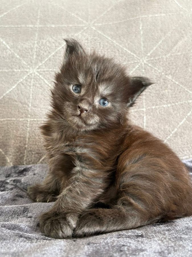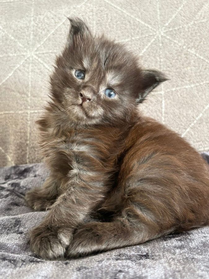 Disponible à la réservation, Astrée chaton maine coon femelle polydactile né le 30/10/2025 inscrit au Loof d’une portée de 4 chatons.