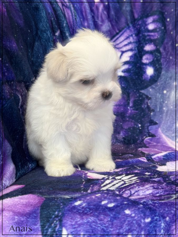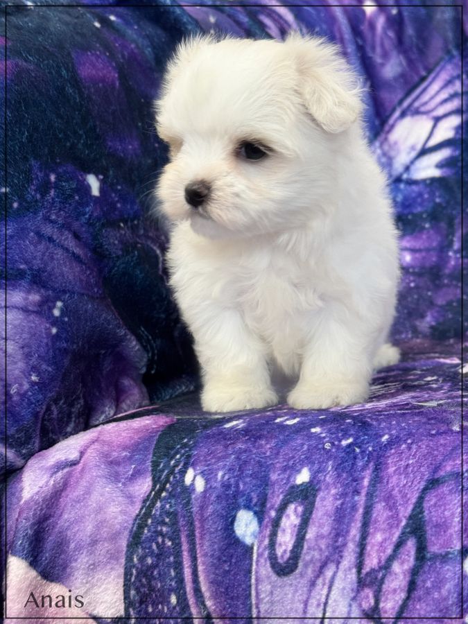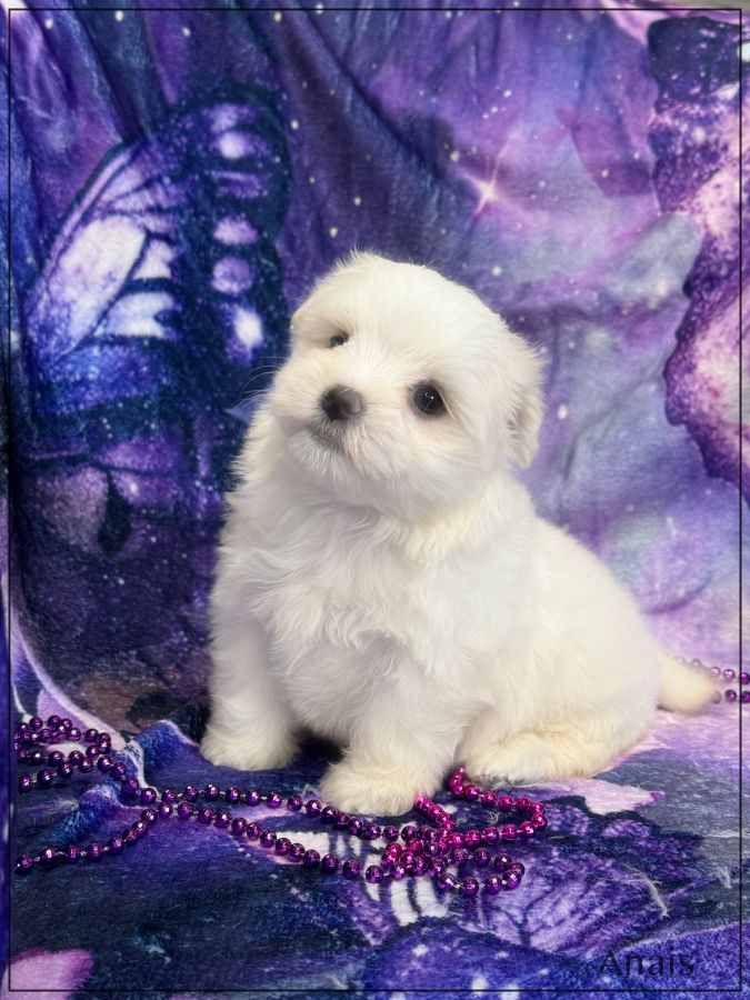 A réserver, Anais, superbe femelle Bichon Maltais petit modèle . Anais est née le 8 octobre dernier ,issue d’une portée de 4 bébés. Elle sera disponible mi décembre. Magnifique chiot ,petit nez court et tête ronde , fourrure très fournie blanche lisse sans boucle ,Anais possède une excellente pigmentation. Son papa pèse 2.5 kgs et sa maman 3,1 kgs ,tous deux avec de superbes origines. Anais est vendue pucée , vaccinée , lof ,certificat du vétérinaire , mutuelle offerte 2 mois, garantie jusqu’à l’âge d’un an en cas de maladie ou malformation héréditaire ou congénitale. Elle est élevée dans un univers familial et fera le bonheur d’une famille .Nous sommes proches de Lyon . Facilités de paiement possible en 4 fois par CB. Suivi et conseils après la vente.Tél 06 84 50 35 30