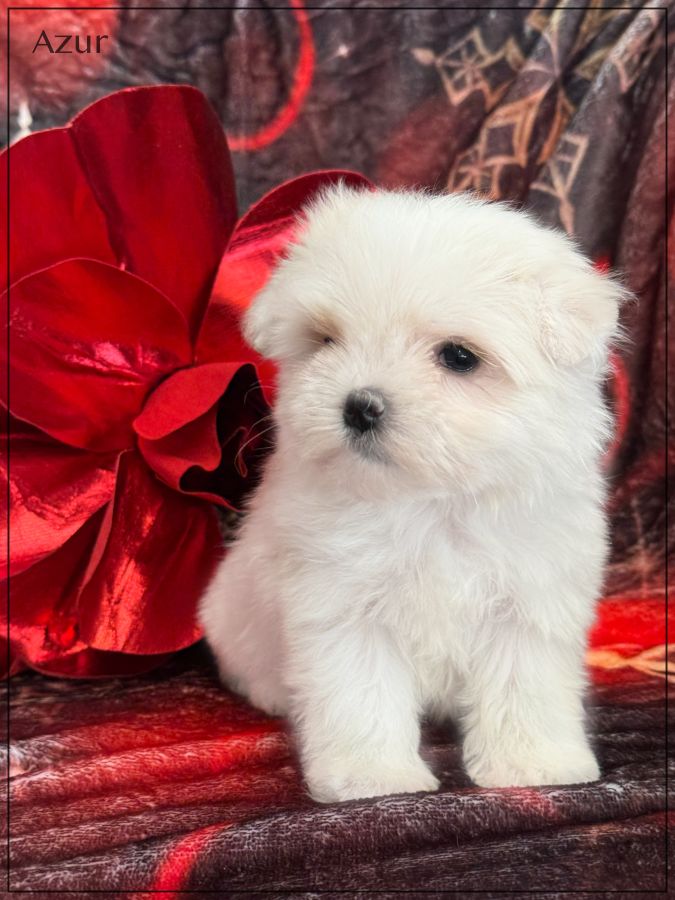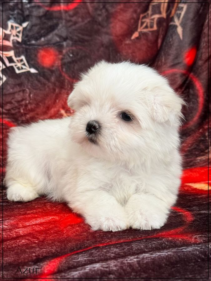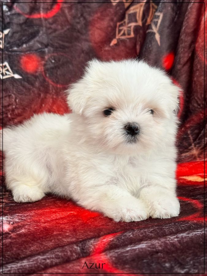 A réserver, Azur, superbe femelle type Bichon Maltais petit modèle, issue de deux parents Lof et confirmés. Azur est née le 30 septembre dernier ,issue d’une portée de 4 bébés. Elle sera disponible mi décembre. Magnifique chiot ,petit nez court et tête ronde , fourrure très fournie blanche lisse sans boucle ,Azur possède une excellente pigmentation. Son papa pèse 2.4 kgs et sa maman 2,8 kgs ,tous deux avec de superbes origines. Azur est vendue pucée , vaccinée , lof ,certificat du vétérinaire , mutuelle offerte 2 mois, garantie jusqu’à l’âge d’un an en cas de maladie ou malformation héréditaire ou congénitale. Elle est élevée dans un univers familial et fera le bonheur d’une famille .Nous sommes proches de Lyon . Facilités de paiement possible en 4 fois par CB. Suivi et conseils après la vente.Tél 06 84 50 35 30