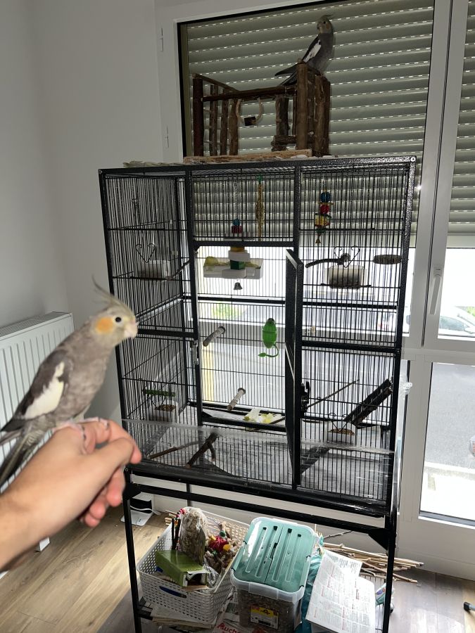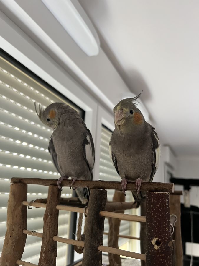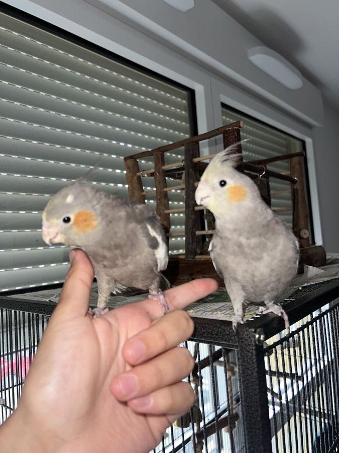 • Deux jeunes mâles (pas sur à 100%) calopsittes nées en juin 2025 (environ 6 mois). Ils sont élevés à la main, habituées à l’humain, très sociables, ils viennent facilement sur l’épaule et n’ont aucune crainte.