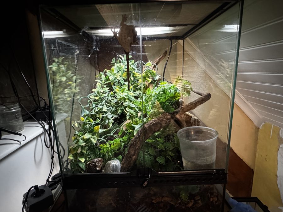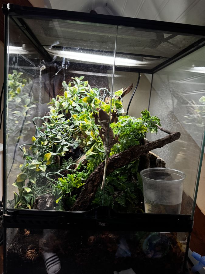 Je le cède de préférence avec son terrarium, thermostat, lampes , substrat, branche, ect…
