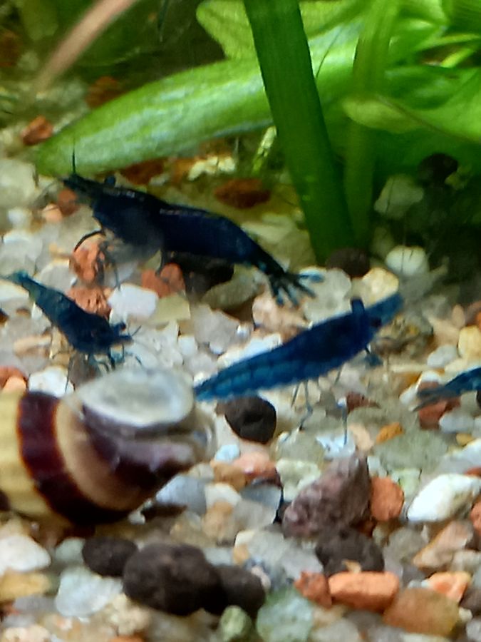 crevettes juvéniles d'environ 1 cm ,pure souche, bac communautaire et eau du robinet