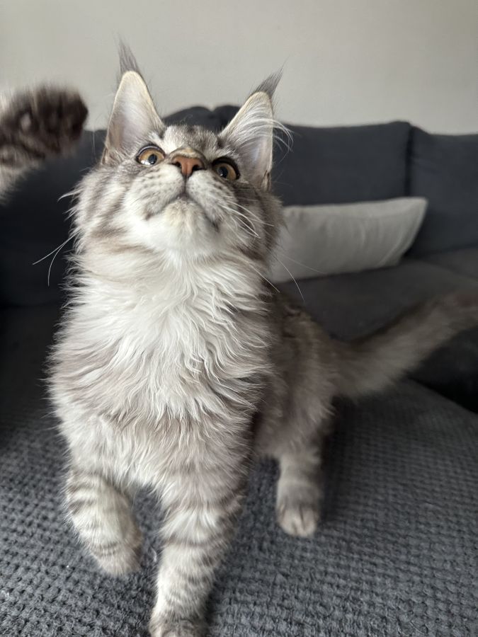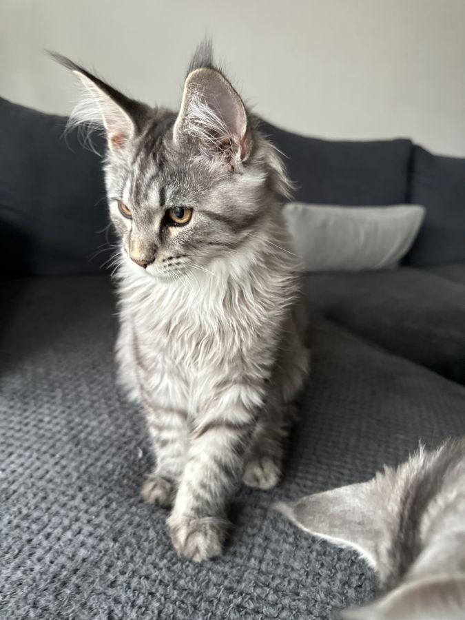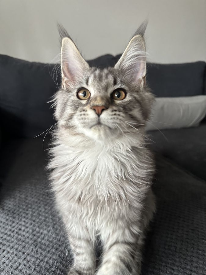Aiko mâle Maine coon black Silver mackerel tabby née le 30 juin 2025 disponible une fois le certificat d’engagement des 7 jours signé. Il est pucé , vaccinés , vermifugé. C’est un chaton plutôt calme et qui adore les câlins n’hésitez pas à me contacter pour venir le rencontréTu