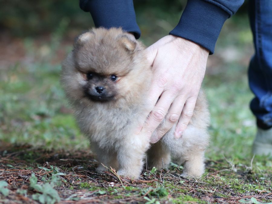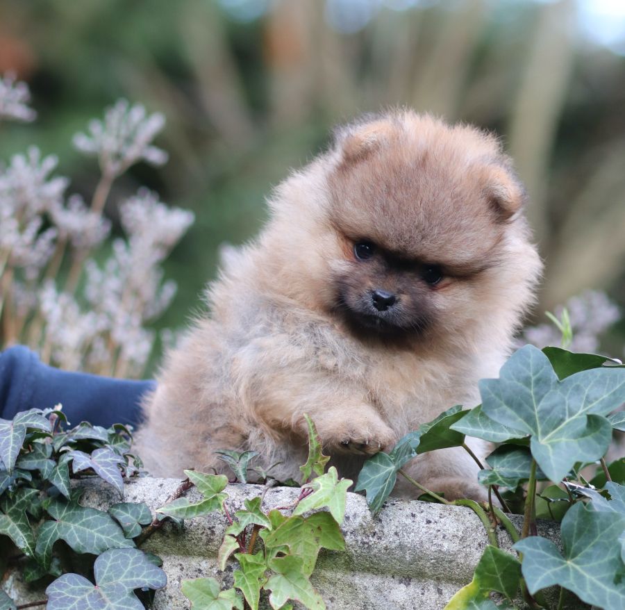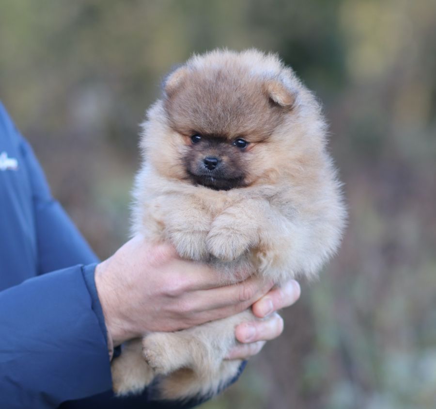 Élevé dans un environnement familial , Aladin est déjà habituée à la vie de la maison et s'entend à merveille avec les autres animaux et les enfants . Ses parents, visibles à l'élevage, sont également des Spitz de qualité, et il héritera de leur caractère joueur et affectueux.