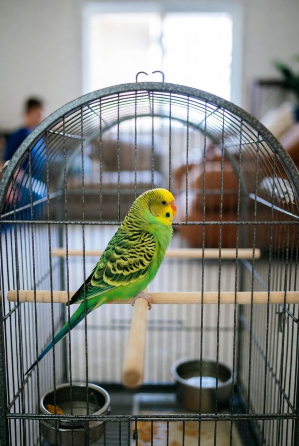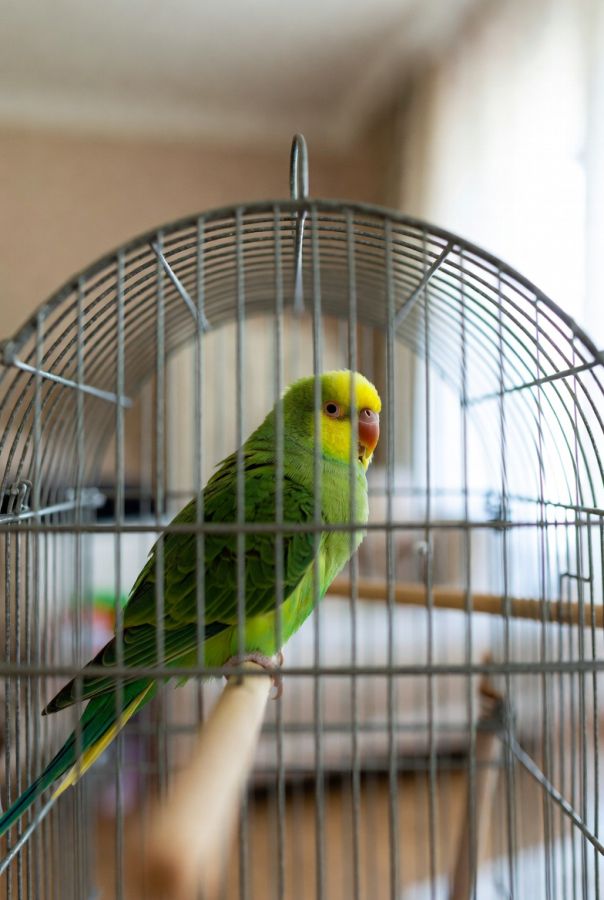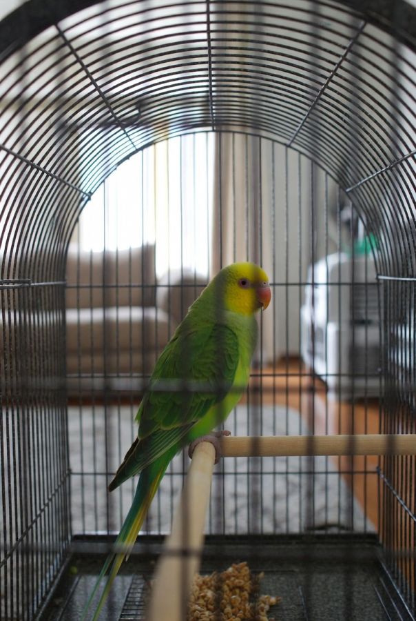 Sort de la cage plusieurs heures par jour, vole librement dans la pièce