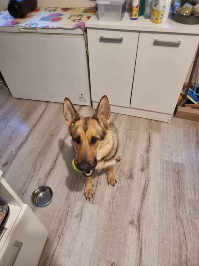 Je propose le don d'une femelle Berger Allemand de 2 ans. Chienne équilibrée, joyeuse et bien éduquée.