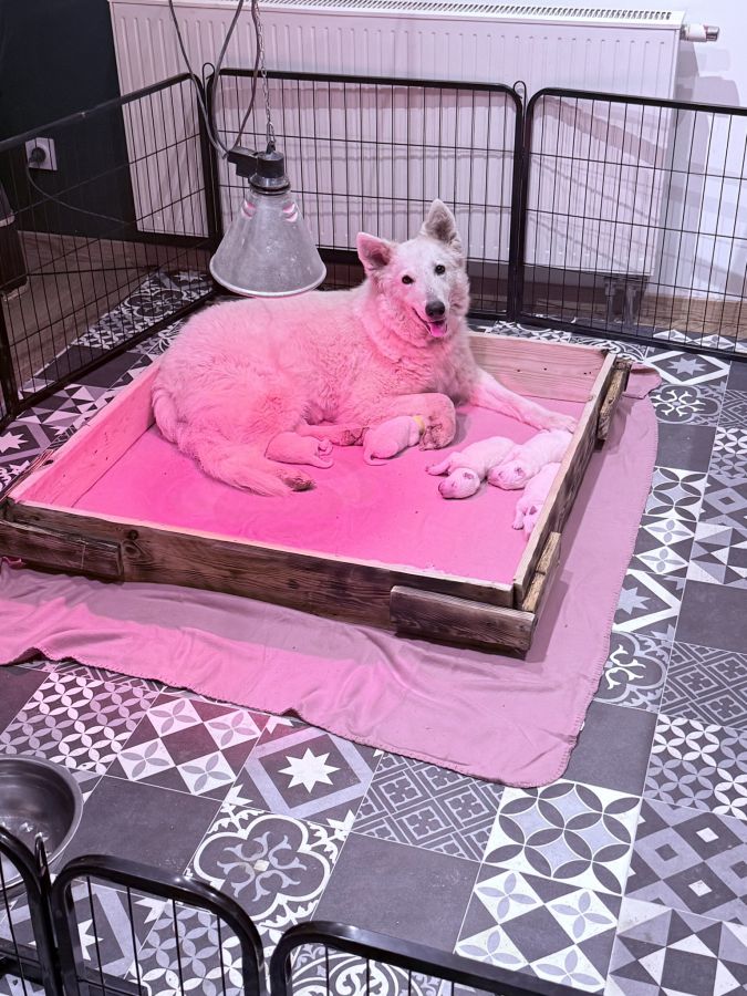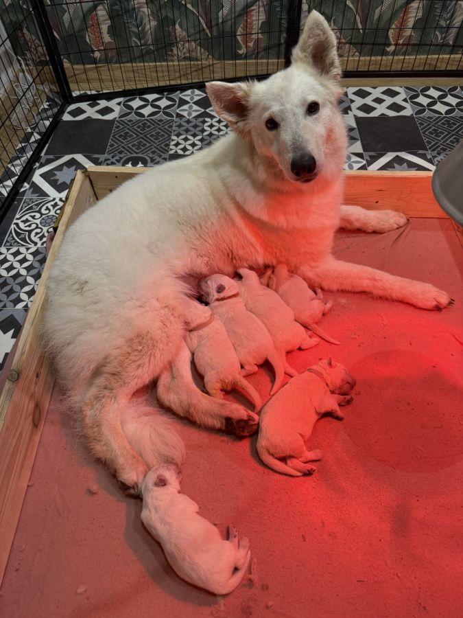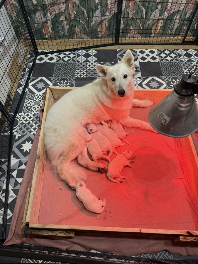 Issu du mariage de 👰 Raven du plateau Ardennais et🤵♂️The snow des hirondelles du voyages sont née 6 chiots.