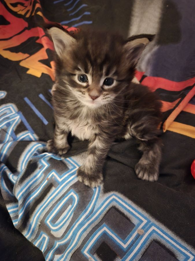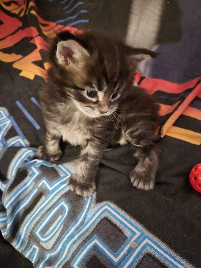 Bonjour, je me prénomme Aiko Newlifevolobriga. Je suis un mâle Maine Coon Brown blotched tabby polydactyle loof. Mon polydactylie est de 6 doigts à chaque patte, autant dire qu'elles sont énormes 😊.