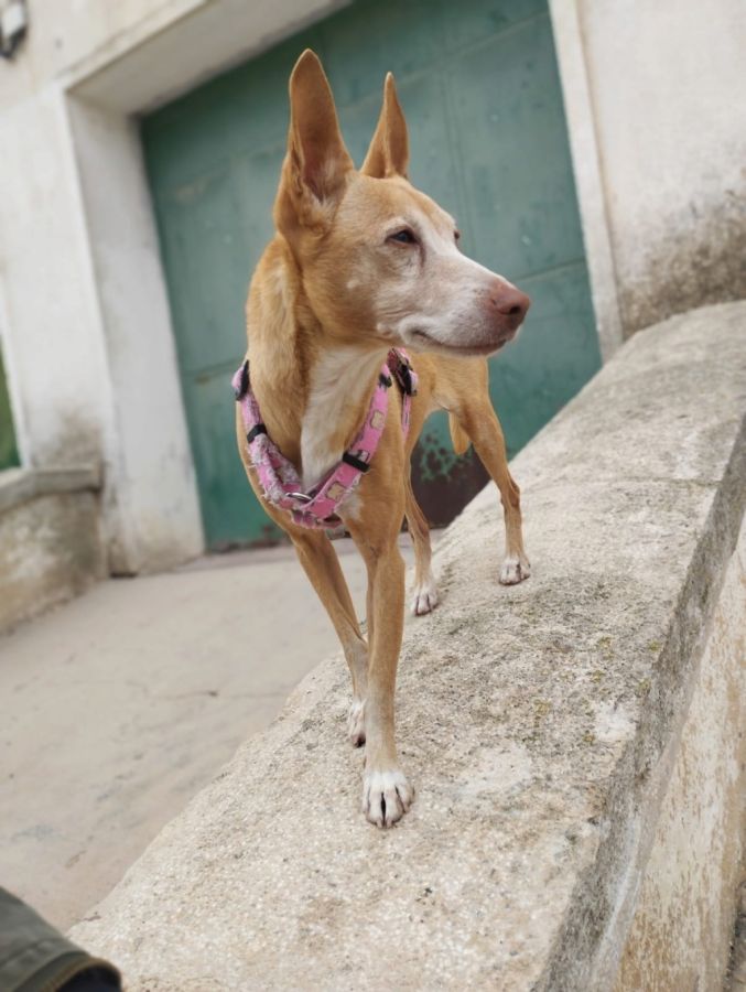 Je suis une toute petite croisée podenca de 6 kg, une petite mamie très gentille, calme, douce, je suis née en octobre 2014.
