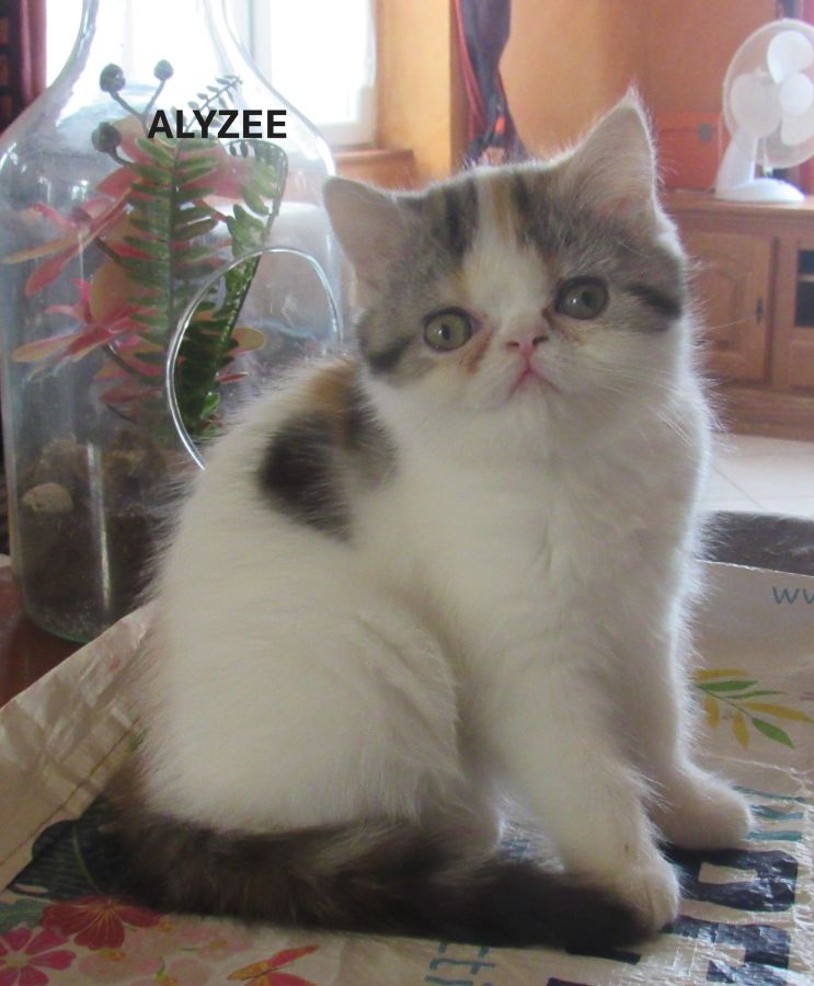 ALYZEE FEMELLE EXOTIC SHORTHAIR COULEUR BLACK TORTIE SILVER BLOTCHED ET BLANC ARLEQUIN ENTIEREMENT VACCINEE (PAS DE FRAIS DE VETERINAIRE AVANT 1 AN)