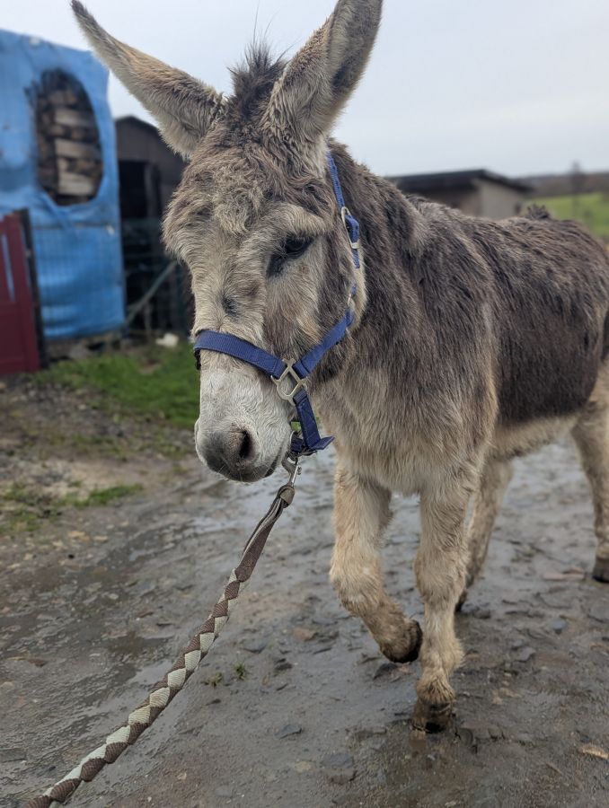 Super petit âne, très sociable, en forme pour des balades ou de petites randonnées. Passe partout, peur de rien, adore les câlins. Bamby se laisse facilement manipuler même par des plus jeunes. Accepte le bât, la selle, et tire volontiers sa petite carriole pour vous emmener faire votre marché. Donne les pieds sans difficulté, monte très bien en van.