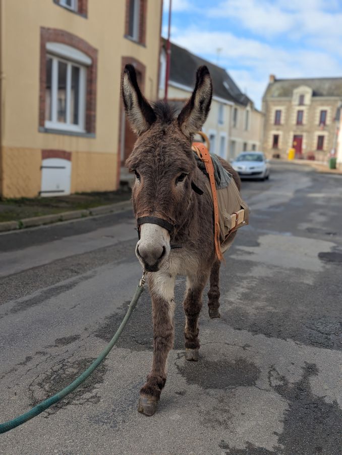 Il quitte le troupeau seul sans soucis et part volontiers à la découverte de l'extérieur. Âne en cours de travail, il a besoin de prendre de l'expérience mais il ferait un très bon partenaire de randonnées futures.