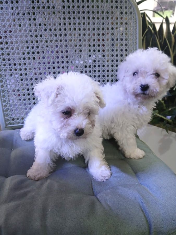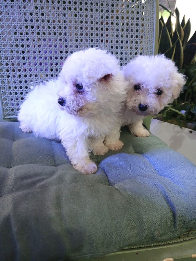 3- chiots Bichon Frisé femelles nées et élevées à la maison le 4 oct. Parents visibles bonnes origines.