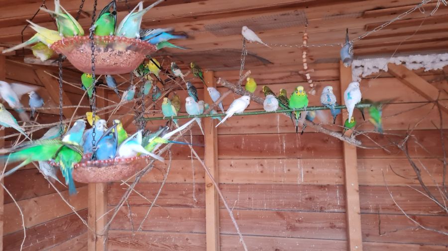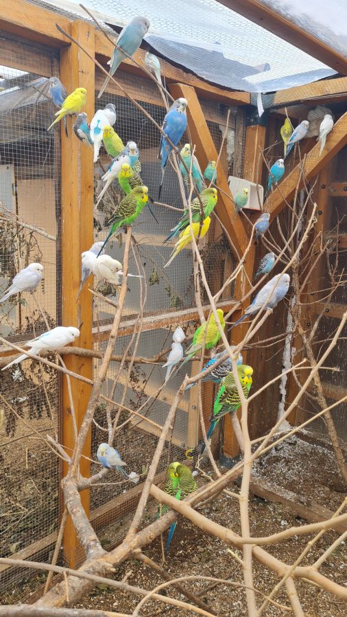 superbe perruche ondulée de l année, reste des bleu des verte des blanche et blanches et bleues élevé par les parent en voliere extérieure