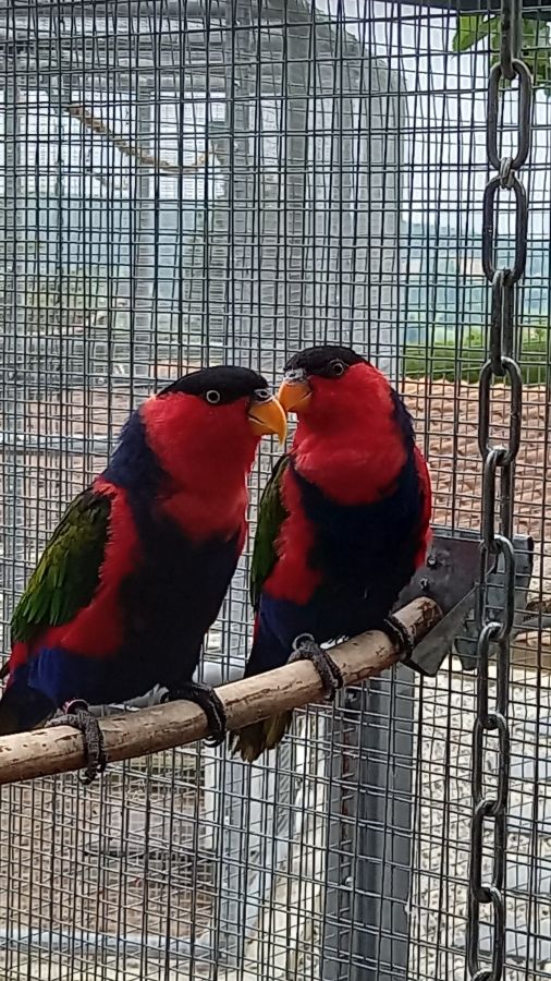 dispose couple lori des Moluque (lori noira) B 25 sexer ADN en volière extérieure