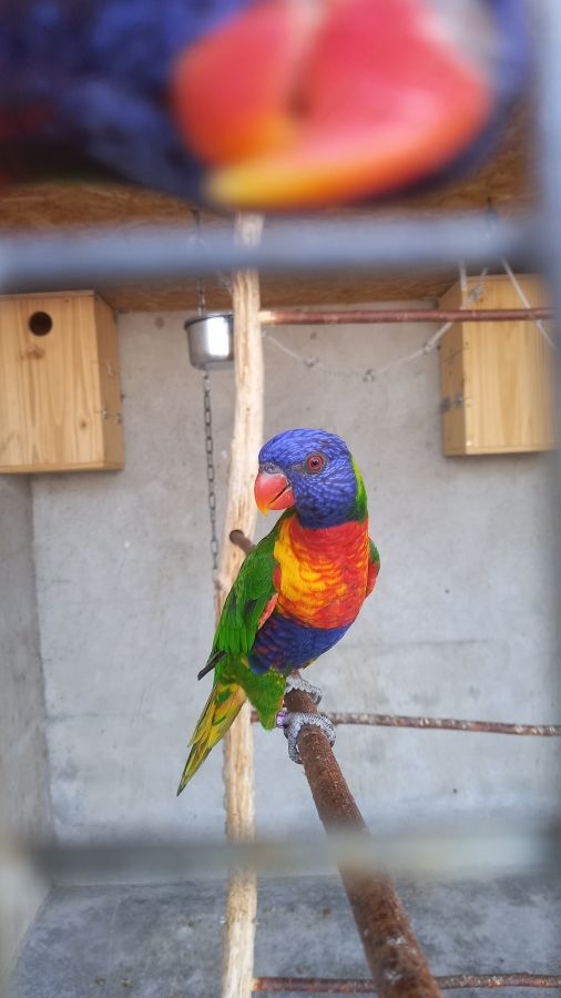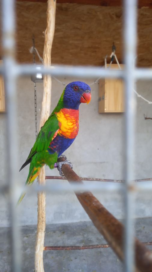 Dispose Loriquet de Swainson, bagué 25, sexé ADN, volière extérieure.