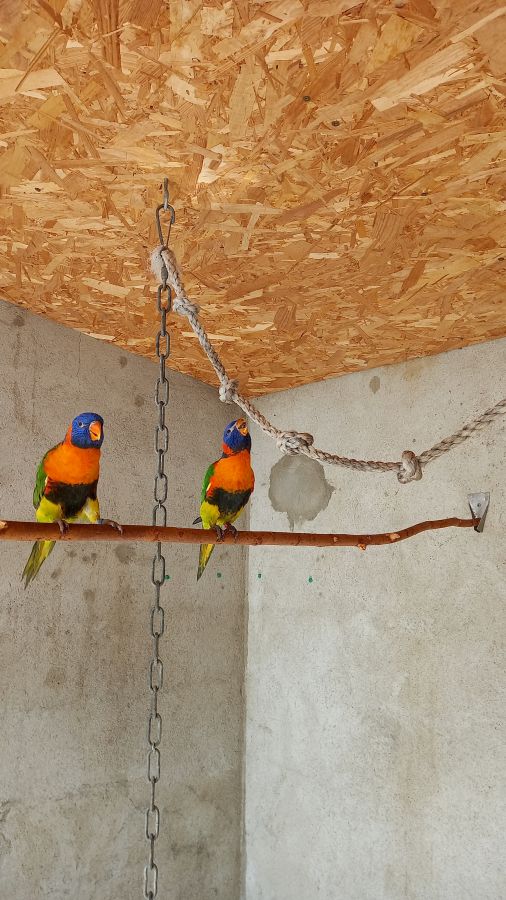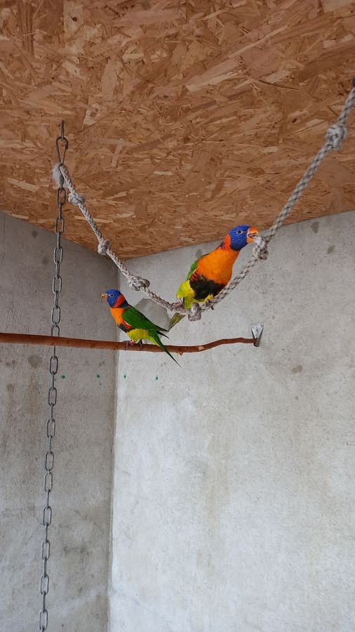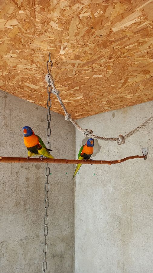 Dispose Loriquet de Swainson, bagué 25, sexé ADN, volière extérieure.