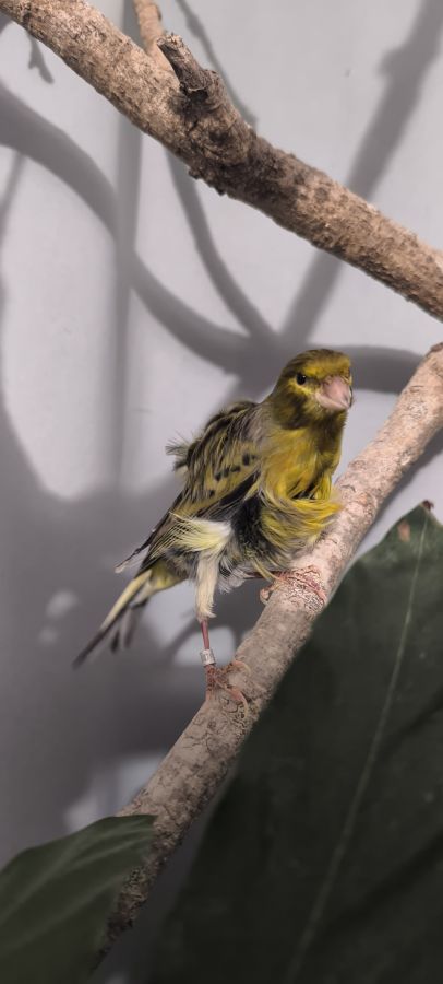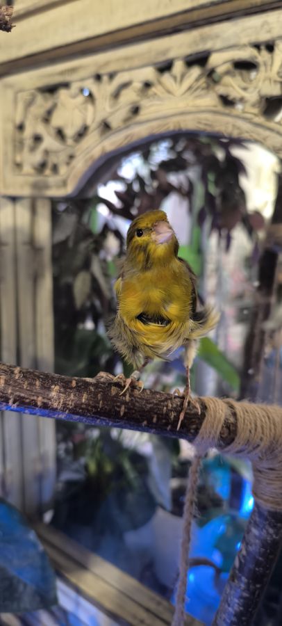 Voici l'un de mes quatre petits mâles canaris frisés du Nord née en 2025 Ce petit male assez discret est une vra...