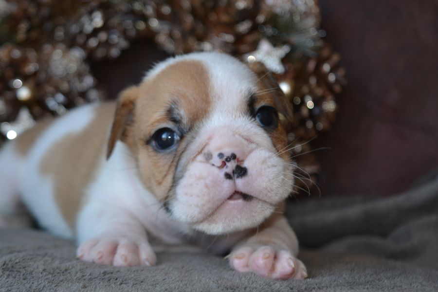Magnifique chiots bulldog anglais nés le 2 novembre et disponible début janvier, il y a 3 mâles et 3 femelles, ils seront identifiés, primo vaccinés, inscrit au LOF (livre des origines français) certificat de bonne santé établi par le vétérinaire. Les parents sont testés et sains de toutes maladies liées à la race. chiots de qualité avec un excellent pedigree.