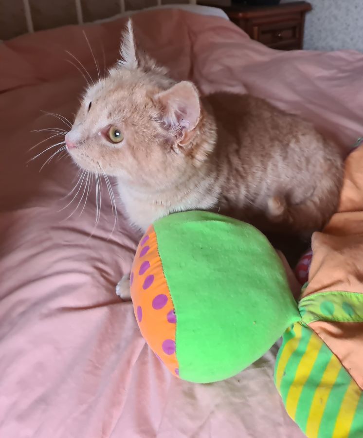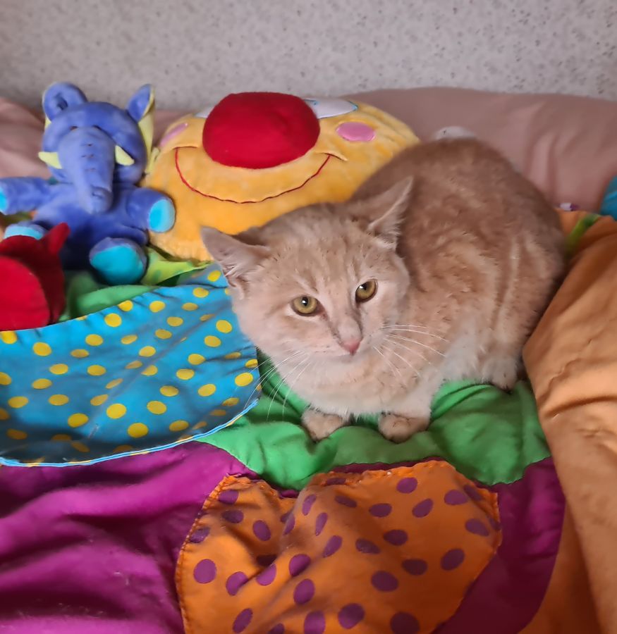 Il reste timide, il n'est pas très hardi. Oguste est calme et doux. Il aime les caresses et ne demande qu'à vivre une belle vie auprès d'adoptants patients et à l'écoute de ses besoins.