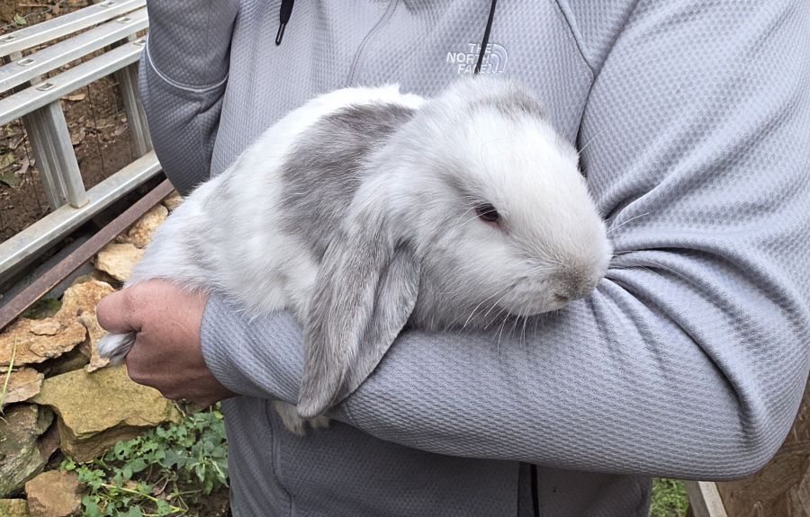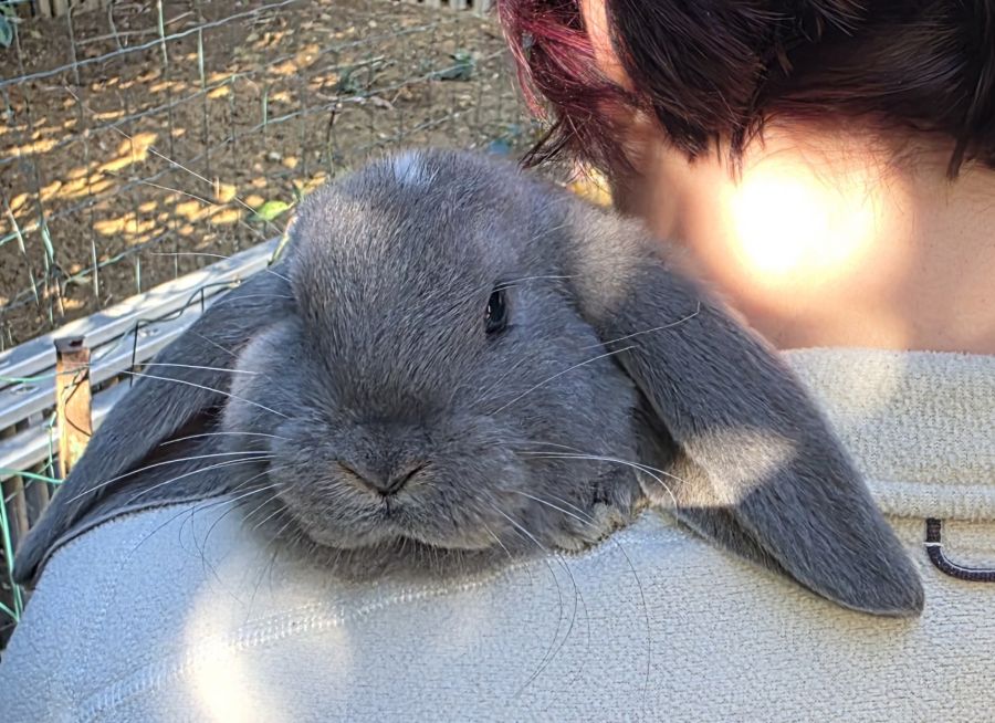 Vivent en extérieur et mangent granulé, foin, pomme et carotte.