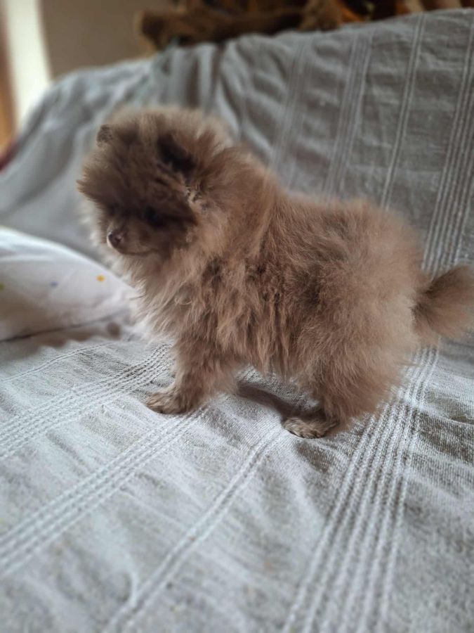 Bonjour, je vous propose une adorable petite femelle spitz chocolat , née le 09/09/2025, et issue d'une portée de 3 chiots. Elle n'est pas inscrite au LOF mais les parents sont visibles sur place et il n'y a aucune consanguinité dans ce mariage. Elle sera à la limite du nain et du petit, soit environ 23-24 cm adulte. Elle est élevée en famille, dans le respect de son rythme et de son âge. Arissa est identifiée par puce électronique, vaccinée (primo injection et premier rappel) et a une attestation vétérinaire de bonne santé. Elle attend une famille aimante et responsable . N'hésitez pas à vous renseigner en toute simplicité. NB: les photos ne sont pas retouchées.