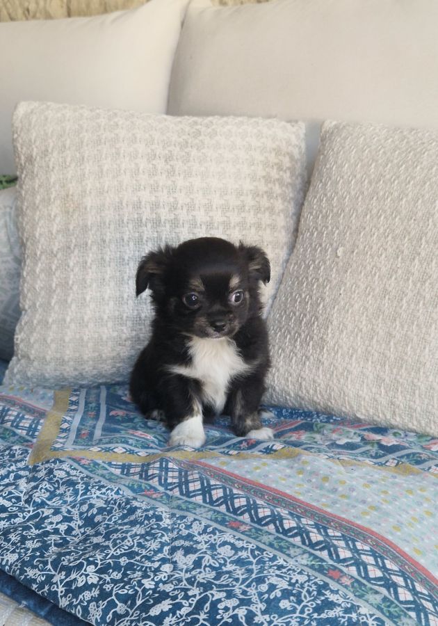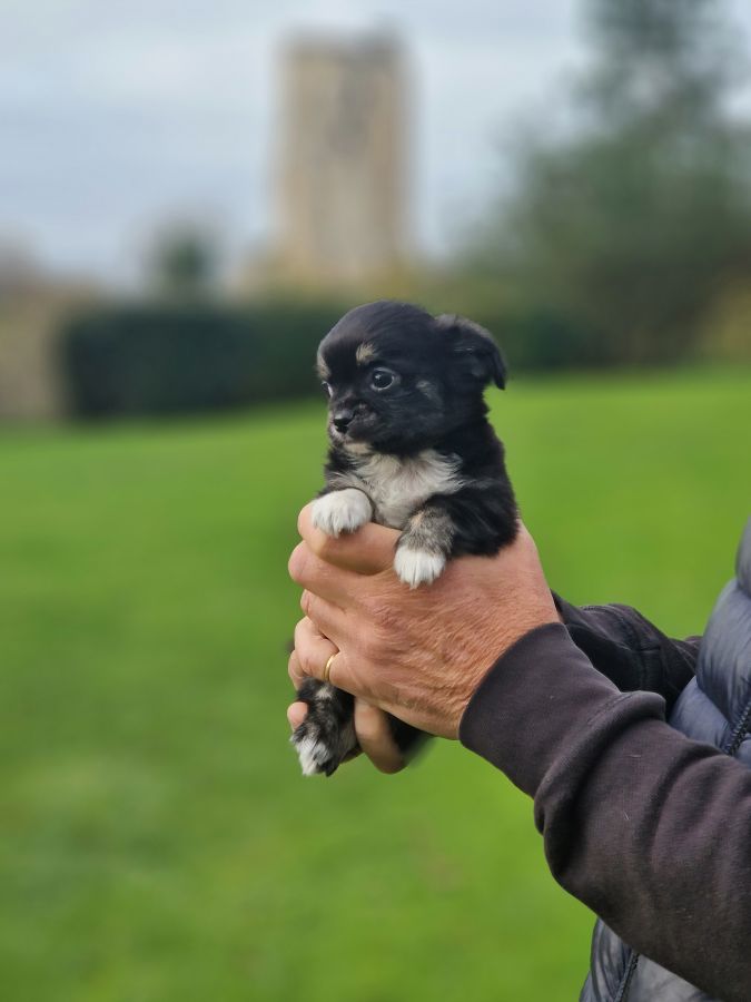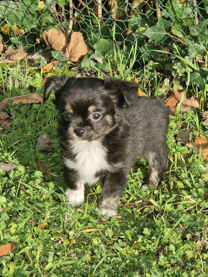 Disponible adorable petit bébé mâle chihuahua à poils longs, de qualité, très bien typé, non inscrit au lof, né le 15 octobre 2025.