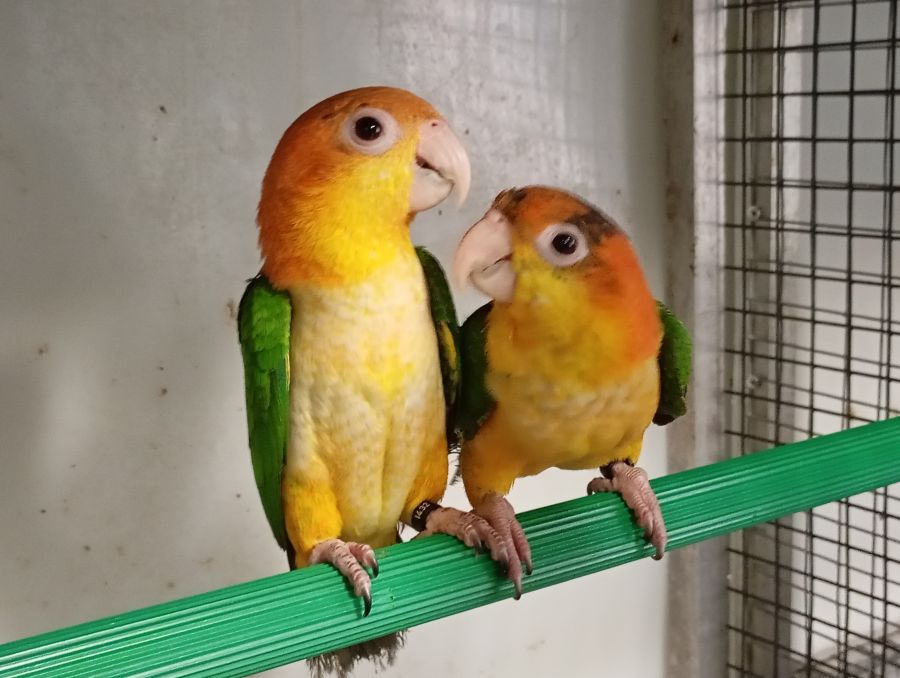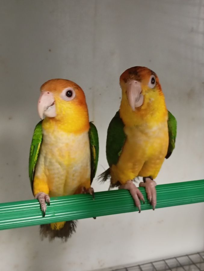 - 2 Femelles Caïques à tête orange à cuisses jaunes (550 euros pièce),