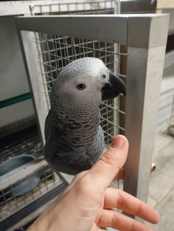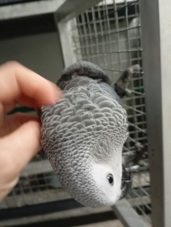 Elle est élevé à la main, elle est très gentille et adore les câlins. Elle est testés pour 4 maladies (PBFD, PDD, Chlamidiose, et Poliomavirus), elle est baguée (F25 11 106 AVF I432) et vendu avec tous les papiers obligatoires dont le CITES CIC C et les résultats des analyses.
