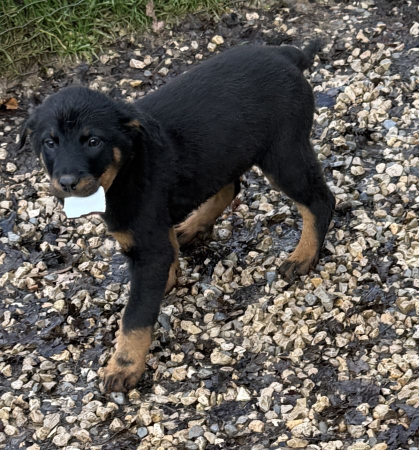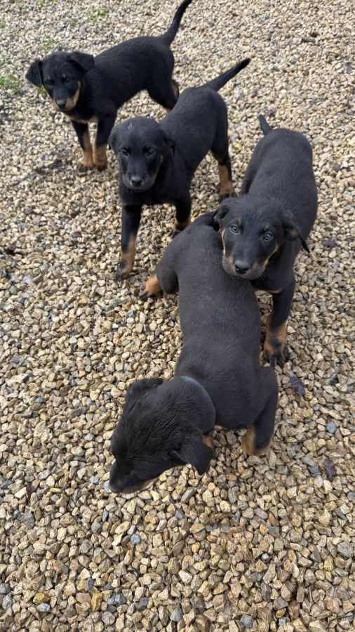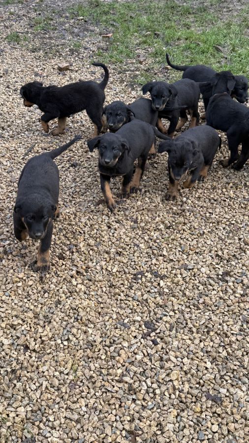 Portée de 10 superbes chiots Beauceron LOF, noir et feu, nés le 04 octobre 2025. Il reste 2 femelles et 4 mâles.