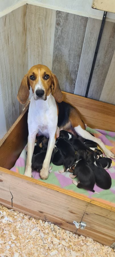Disponible Petits chiots Anglo Français de petite vénerie non lof, 5 mâles 4 femelles nés le 27/09/2025, ils sont vaccinés, tatoué, vermifugés, plus un certificat de bonne santé établi par le vétérinaire. La mère Velours de la Passion du Jack, le père Senlis du Haut Valois. La race petit Anglo est un chien de chasse mais aussi un animal de compagnie comme le Beagle, l’Anglo est affectueux câlin et très gentil, ce n’est pas du tout un chien agressif, par contre pour l’accueillir il lui faut impérativement une maison avec du terrain, l’Anglo ne peut pas vivre en appartement.