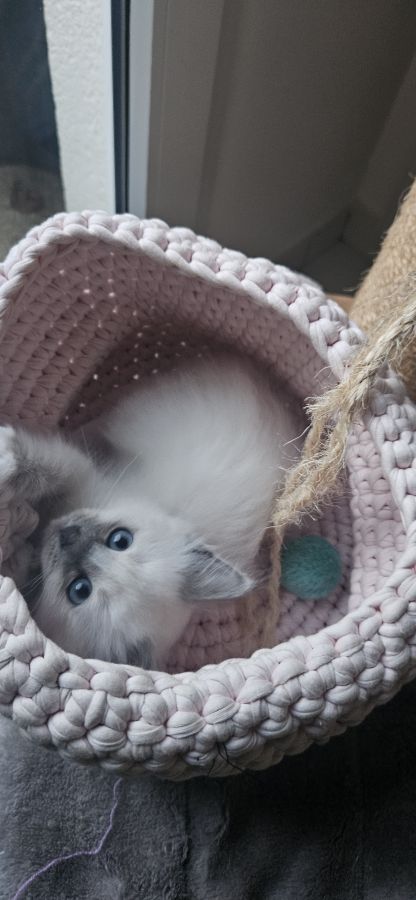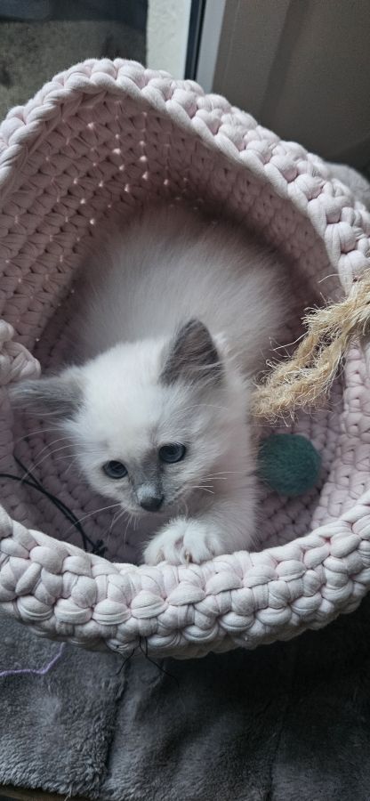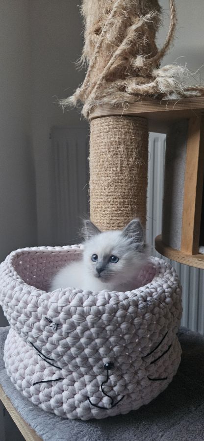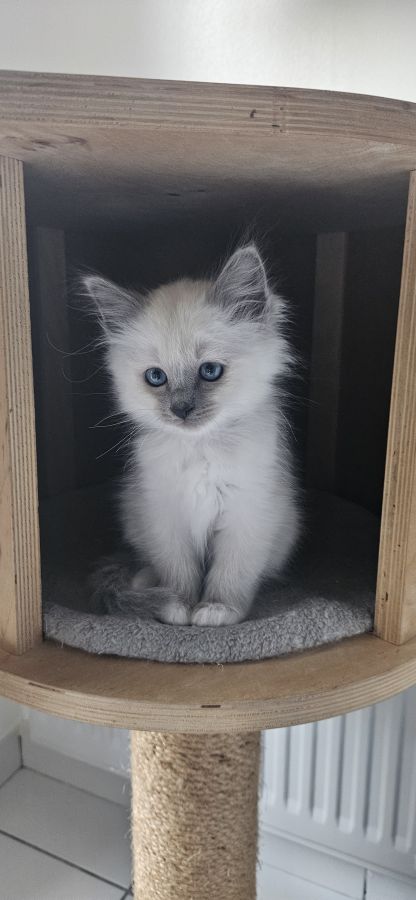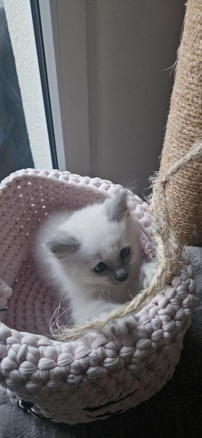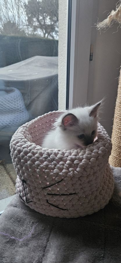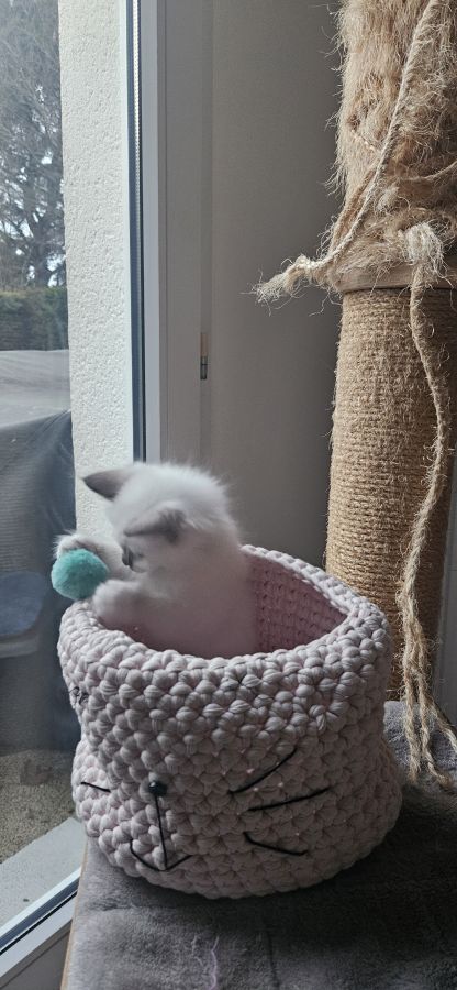 Elle est née le 14 octobre 2025 , est pleine d' énergie, de douceur et d'affection. Elle vit avec nous, partage tous nos regroupements familiaux, est habituée aux bruits des appareils ménagers du quotidien et socialisée avec toute l'attention de nos enfants et de nous même. Elle est de couleur blue point .